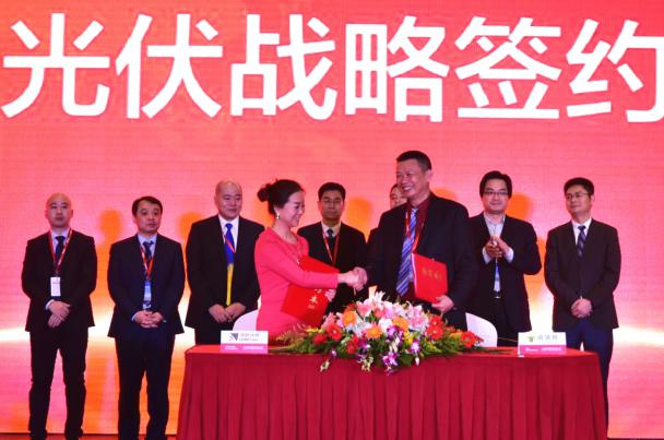 在国家发改委能源研究所研究员王斯成、全国工商联新能源商会秘书长史利民、乐叶光伏总裁李文学、中民新能(上海)投资有限公司总经理包育栋、上海交大博士生导师沈文忠、浙江合大太阳能科技有限公司总经理侯生跃的见证下,乐叶光伏与太阳雨、淘顶网举行盛大的战略签约仪式,一共签署了220MW的乐叶光伏组件渠道代理战略合作协议。