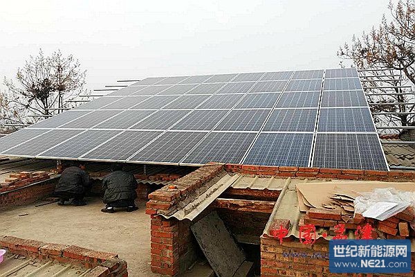 12月2日下午,孟津县城关镇徐岭村村民王红超在房顶上架起了太阳能电池片方阵,当了全村“第一个吃螃蟹的人”,率先安装光伏发电设备。