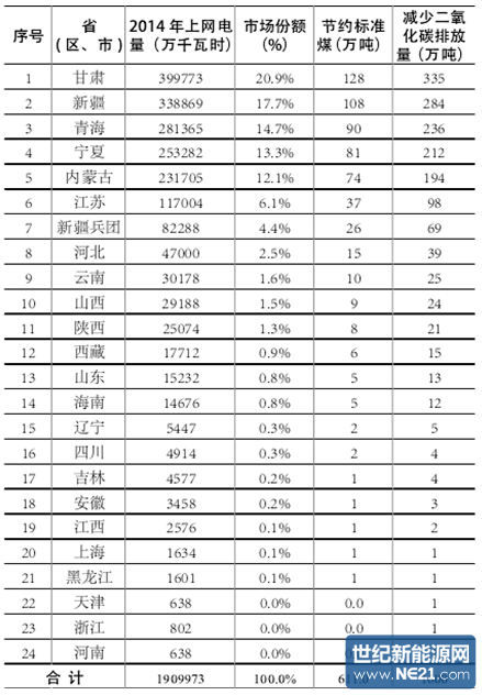 各省区光伏电站项目上网电量