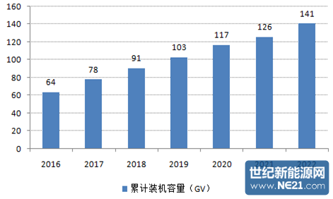 目前我国光伏产业规模持续扩大,行业发展总体趋好。伴随着我国光伏行业的进一步发展,预计未来几年,光伏行业市场容量将呈现出逐年增长态势。据预测,到2022年我国光伏累计装机容量将达141GW。