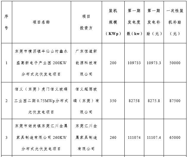 广东东莞拨付第三批(第一期)企业分布式光伏专项补助资金