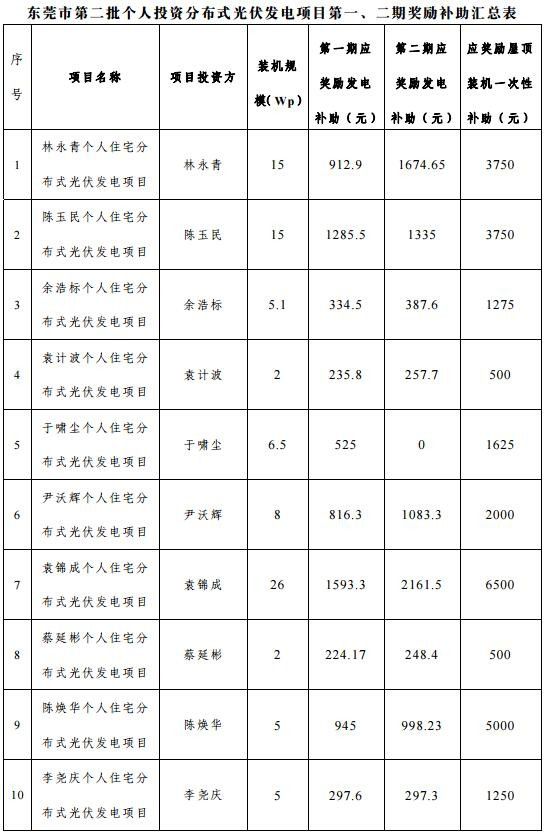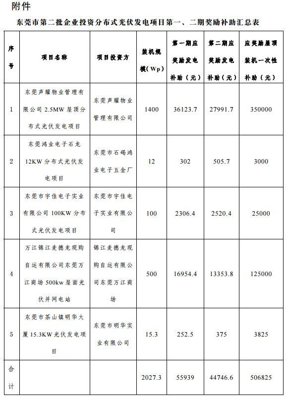 广东东莞拨付第二批(第一、二期)分布式光伏发电项目专项补助资金