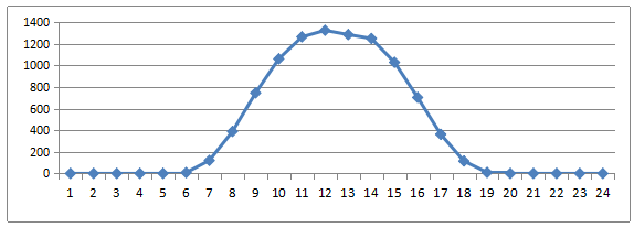 图1光伏逐时出力年平均值(单位:kW)