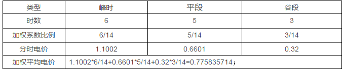 王淑娟老师在《分布式光伏项目电价的计算方法》一文中提出了平均出力比例加权的计算方法,即以不同电价时的全年日平均出力加权,其计算公式应该如下: