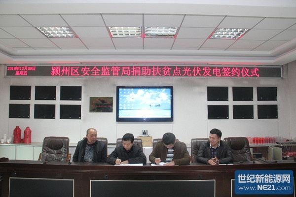 12月9日,阜阳市安监局与浙江晶科光伏科技有限公司就光伏发电签约仪式。阜阳市安监局局长李智、副局长张民,颍州区安监局局长张圣玉与浙江晶科光伏科技有限公司项目负责人朱家林亲临签约现场,共同见证并进行了签约仪式。