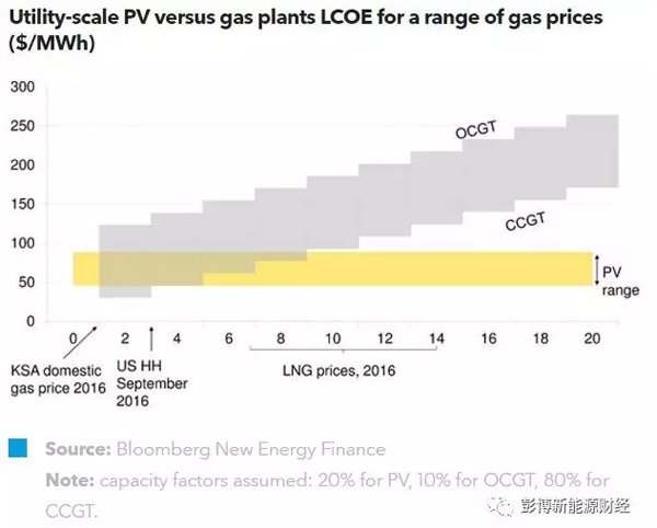 随着光伏和风电系统成本的不断下降,再加上能源补贴改革的助力,MENA经济体必须面对一个新的可再生能源与经济发展环境。现阶段,光伏电厂的发电成本要低于天然气进口国内的天然气电厂(基本负荷运行下的)成本。即使是在沙特阿拉伯等燃料价格补贴丰厚的国家,光伏仍是应对峰值电力需求时最为经济的方式。