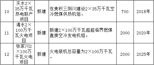 天水市位于我国南北火电、水电布局的交叉位置,区位优势明显,随着高速公路、天平铁路、天武铁路等交通项目的陆续完成,为境内煤炭调入消费提供了便利的条件。“十三五”期间,合理有序推进火电项目建设,建成天水2×350兆瓦热电联产项目,关停现役燃煤小锅炉,为秦州和麦积城区供暖,提高城区综合能源保障能力、改善城区环境空气质量。争取建成清水2×1000兆瓦火电项目,加快张家川2×1000兆瓦等火电项目前期工作。通过对工业企业的动力锅炉改造和集中供热项目的实施,力争全市煤炭用量2020年控制在500万吨标准煤,2025年煤炭总用量控制在750万吨标准煤以内。