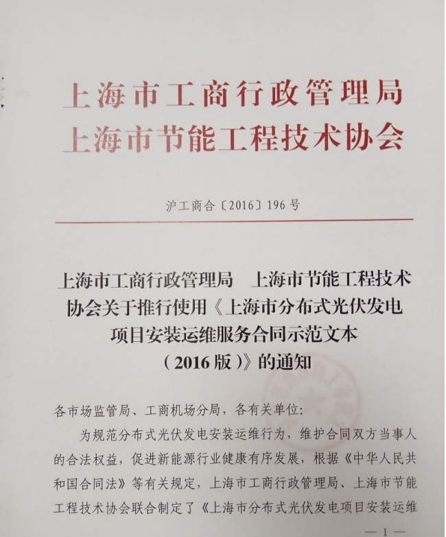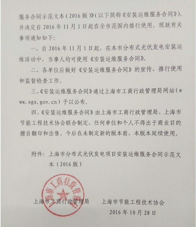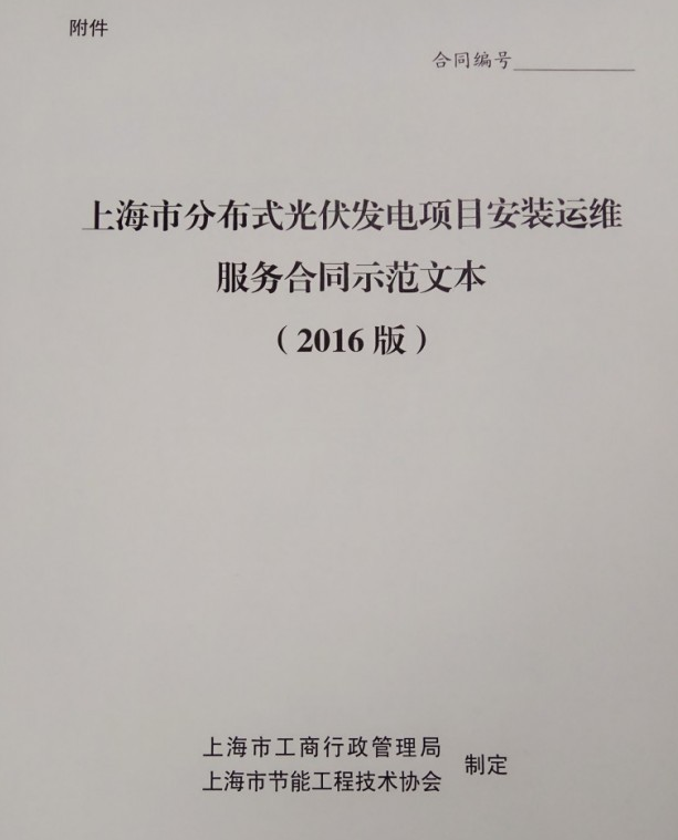 上海推行《上海市分布式光伏发电项目安装运维服务合同示范文本》通知