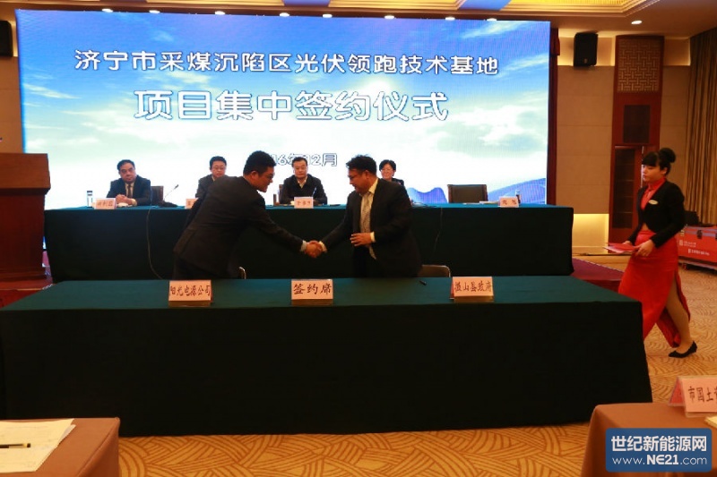 签约仪式上,济宁市发改委介绍了济宁采煤沉陷区光伏领跑技术基地有关情况,指出经过前期积极向国家能源局汇报争取,编制、上报申报材料,落实土地、电力消纳、税收征缴等建设条件,组织编制稳沉分析、电力消纳、生态影响分析等专题报告,编制实施方案,组织企业评优和选址等大量工作,基地建设各项准备工作基本就绪,下步要制定工程建设计划,保证项目建设质量。