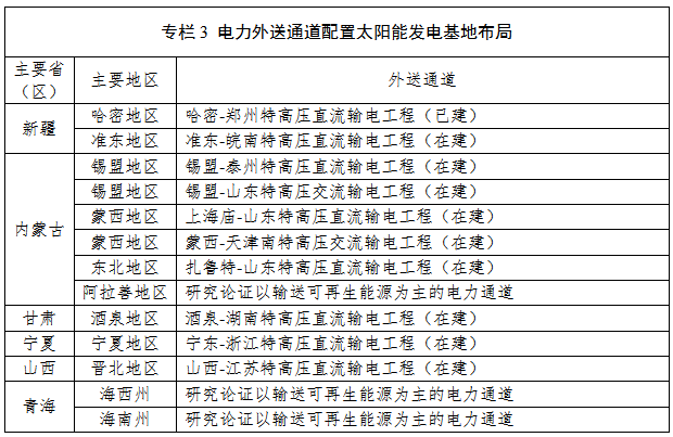 2、结合电力外送通道建设太阳能发电基地