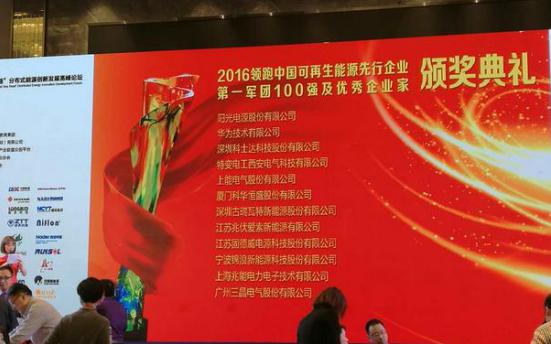索比光伏网讯:12月12日,2016年第六届加强应用长江经济带“一带一路”分布式能源创新发展论坛在南京盛大召开,三晶电气受邀出席盛会,并荣膺”2016领跑中国可再生能源先行企业第一军团100强”称号,总经理欧阳家淦先生被授予“优秀企业家”荣誉。