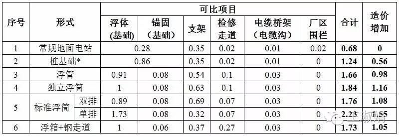 *桩基础造价与桩高相关,水深每增加1m,成本增加约0.15元/W