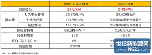 日本公布了2017年度光伏发电收购价格:非住宅为21日元/kWh,2MW以上要竞标