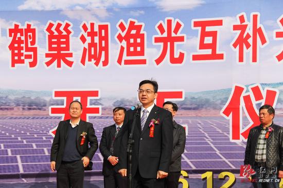 林治学宣布鹤巢湖渔光互补光伏发电项目开工。