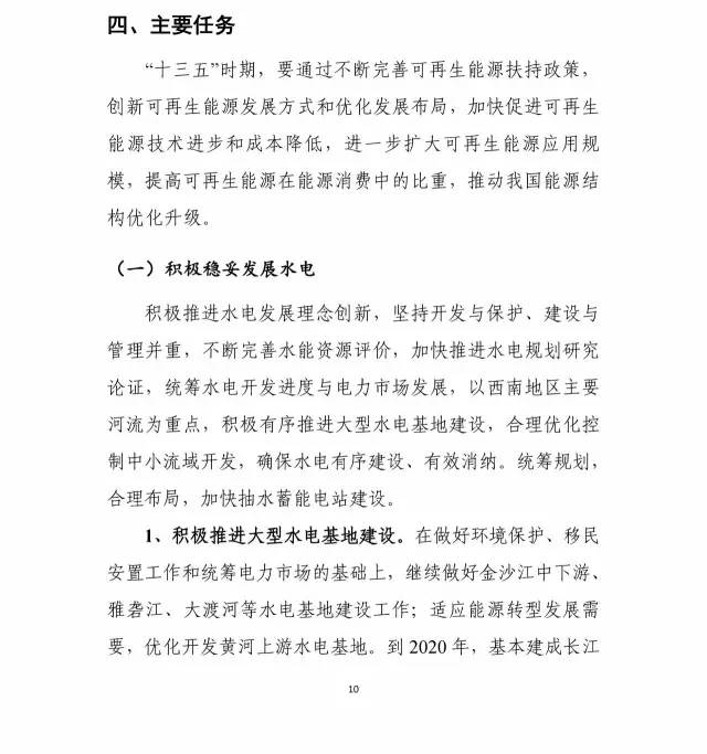 国家发展改革委网站16日公布《可再生能源发展“十三五”规划》,对风光水电、生物质能、地热能、海洋能等2016-2020年的发展给出明确规划。小编截取了其中“主要任务”部分。原文如下: