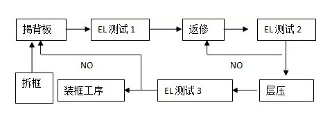 2) 组件揭背板后、返修后、层压后都要进行EL测试,检查返修质量。