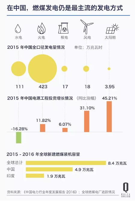 中国是新建燃煤电厂发电规模最大的国家。根据全球燃煤电厂追踪系统的数据,2015 至 2016 年间,中国在建燃煤发电规模达到 19.3 万兆瓦,全球其它地区之和不过 14.5 万兆瓦。