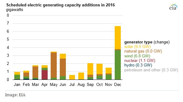 尽管如此,太阳能和风能仍占美国总发电量的一小部分。在2016年前9个月,公用事业规模和分布式太阳能提供了全国电力的1.4%,风电占5%。今后工厂产量将在2017年提高。