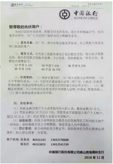 为响应国家环保政策,积极支持光伏发电,我行本着精诚合作,协同服务的原则,为广大光伏用户提供光伏分期融资业务。
