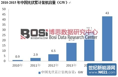 根据国家能源局数据: 2015年底,我国光伏发电累计装机容量4318万千瓦,成为全球光伏发电装机容量最大的国家。新增装机容量1513万千瓦,完成了2015年度新增并网装机1500万千瓦的目标。
