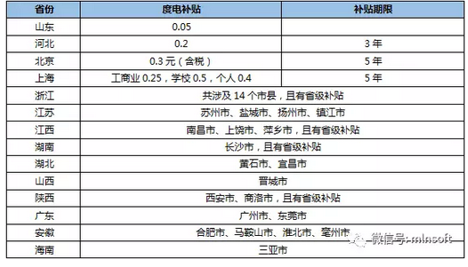 注:全国各地光伏项目补贴政策情况较复杂,表中只列出概要信息