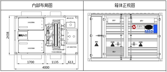 3)集散式中压预装式逆变升压一体单元体积小(长*宽*高4000mm*2458mm*2591mm),箱变和逆变器地基合一,长度才4米,占地面积小,施工方便,成本低;