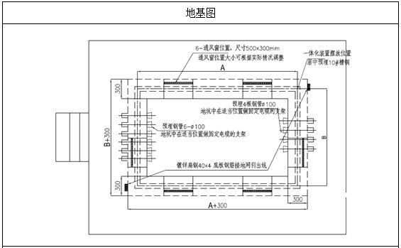 预装式逆变箱变升压一体机集成度高,体积小,施工方便。其系统图及地基图如下图: