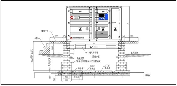 对于本项目,逆变器厂家给业主提供预装式逆变升压一体机简单地基图纸,业主只需按照图纸的要求建设简单地基,相比于逆变器和箱变分开需要2个地基,预装式一体机方案只需建造一个地基,地基基础建设好后,只需把集装箱式逆变箱变一起机吊装上去即可,而且不用再在现场挖电缆沟和对逆变器和箱变进行接线,省时省力。
