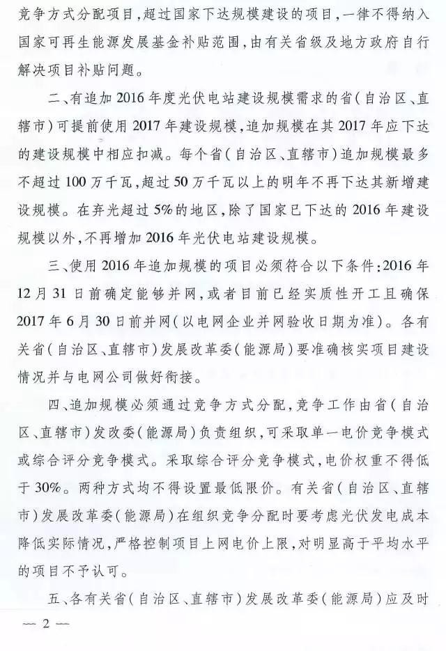 一、各地将严控国家下达规模,全面采取竞价方式分配项目指标。超过国家下达规模一律不得纳入国家补贴资金补贴范围,由地方(省、自治区、直辖市)自行解决;
