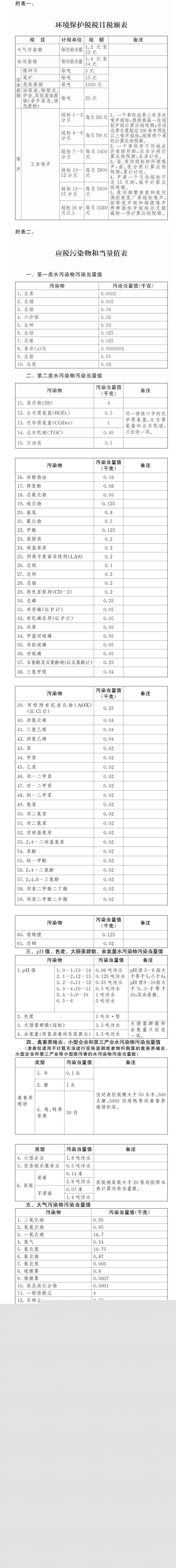 第六条 环境保护税的税目、税额,依照本法所附《环境保护税税目税额表》执行。