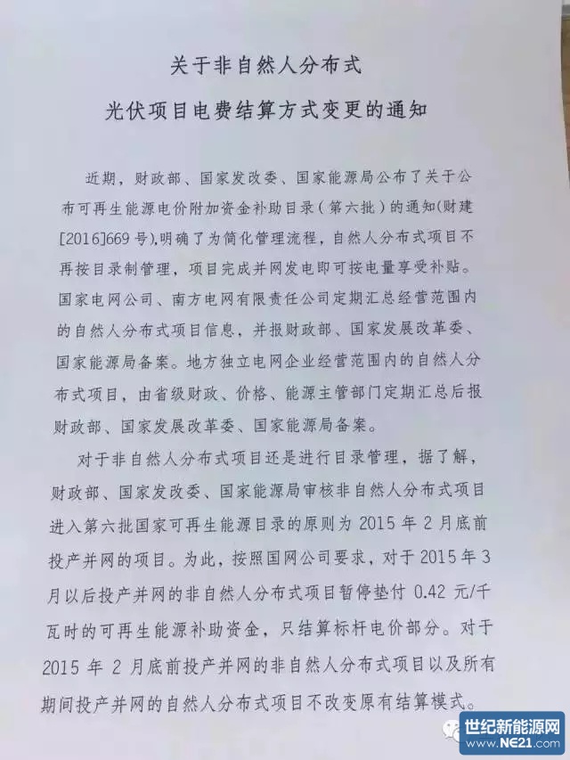 该条通知要求,对于2015年3月份以后投产并网的非自然人分布式项目暂停垫付0.42元/千瓦时的可再生能源补贴资金。虽然这条信息并未证实其真实性,但也表现出了国网的一种担忧和态度,财政局大量拖欠可再生能源补贴,这严重影响国网的资金状况和财务状况,国网也没有义务垫付光伏补贴。