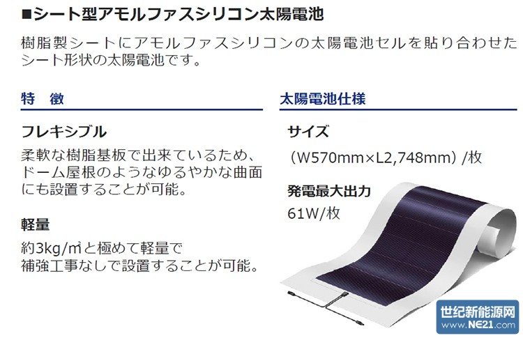 名古屋巨蛋所采用的非硅可挠式太阳能板介绍。(来源:名古屋巨蛋)