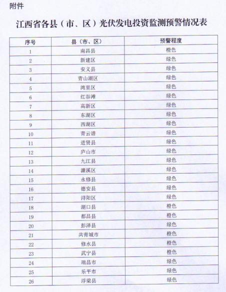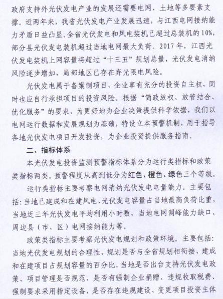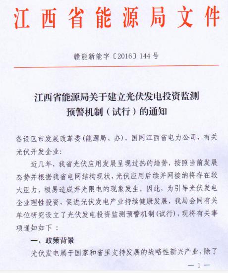 原标题:江西省能源局关于建立光伏发电投资监测预警机制(试行)的通知