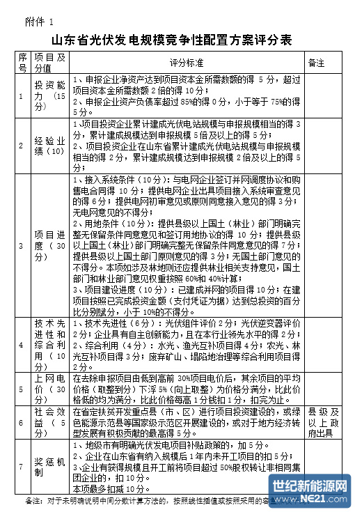 附件:1:山东省光伏发电规模竞争性配置方案评分表