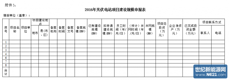 2、各设区市发展改革部门按照省里统一安排,依据国家和省里的相关要求及标准,组织对各县(市、区)申报项目进行准确核实与合格性审查,将符合条件的项目汇总填报《2016年光伏电站项目建设规模申报表》(附件3)。