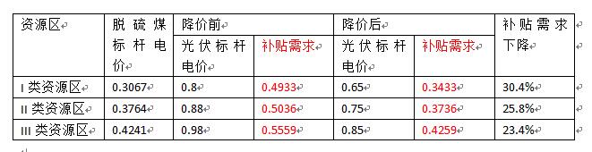 上网电价下调带来的补贴需求下降(单位:元/kwh)