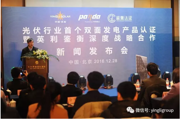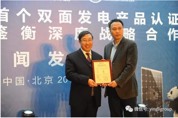 与常规光伏产业认证不同,北京鉴衡认证中心的“领跑者”先进技术产品认证更侧重于对技术先进性和可靠性的评价。依照鉴衡“型式试验+技术评审+获证后监督”的基本模式,经过认证人员对英利N型双面发电光伏组件的关键性能指标及质量稳定性等方面的认证测试,工艺控制水平和设备能力、检测过程控制能力、产品质量的稳定性、质量管理能力等方面均表现优异,电池正面转换效率、组件正面转换效率、组件双面发电增益率均达到A+,达到行业领先水平,超过了“领跑者”计划中对先进技术的要求。值得一提的是,该测试方法首次完成了光伏发电产品的双面认证,并对组件双面发电增益率进行科学定义,已经纳入鉴衡认证技术规范。