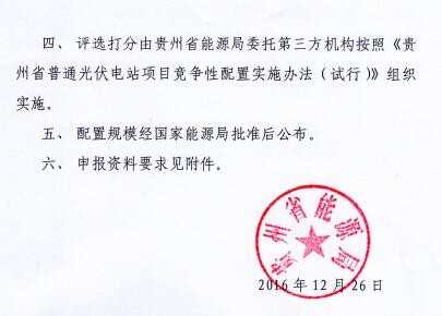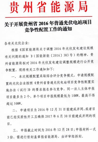贵州省开展2016年普通光伏电站项目竞争性配置工作 28日截止!