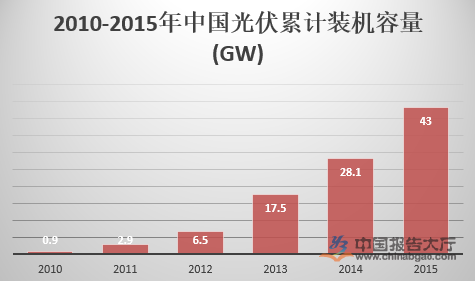 根据国家能源局数据:2015年底,我国光伏发电累计装机容量4318万千瓦,成为全球光伏发电装机容量最大的国家。新增装机容量1513万千瓦,完成了2015年度新增并网装机1500万千瓦的目标。