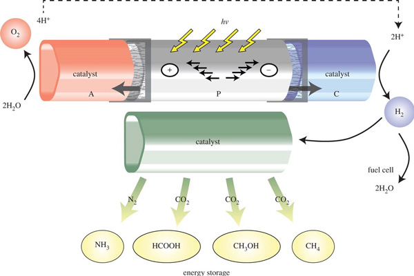 除了智能电网方案以外,另一项技术有可能对太阳能利用产生革命性影响。美国人工光合作用联合研究中心 JCAP(Joint Center for Artificial Photosynthesis)的化学家Nathan Lewis指出:可以利用太阳光把二氧化碳和水直接变为碳氢化合物液态燃料(如甲醇),这将整个改变能源业界的游戏规则。