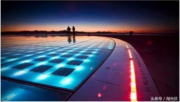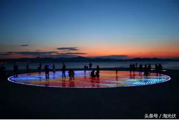 克罗地亚建筑师尼古拉·基本的公共艺术装置由300个光伏玻璃盘铺成的LED改变颜色和图案的广场,并有海浪声音环绕。