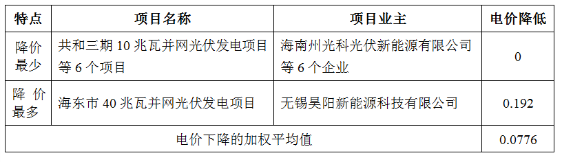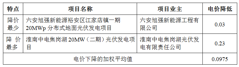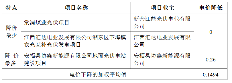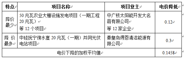 由于不同项目的标杆电价不同,故采用“中标项目的电价在原标杆电价基础上、降低绝对值”进行比较。