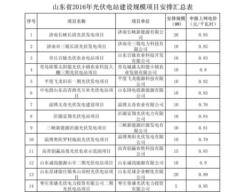 附件:山东省2016年光伏电站建设规模项目安排汇总表