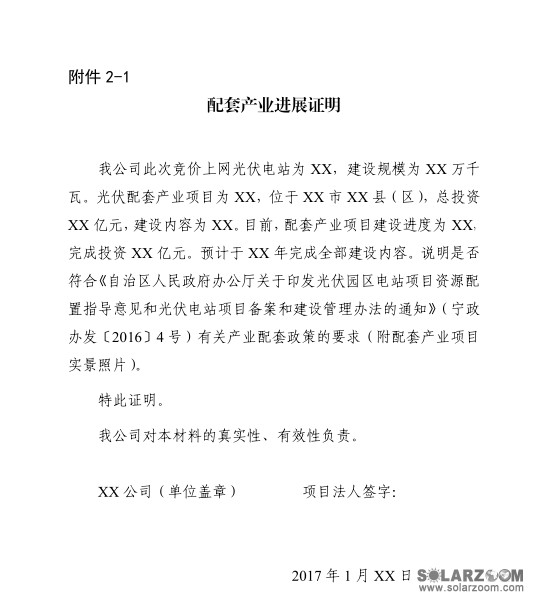 必须严格执行《自治区人民政府办公厅关于印发光伏园区电站项目资源配置指导意见和光伏电站项目备案和建设管理办法的通知》(宁政办发〔2016〕4号)关于配套产业的有关规定。