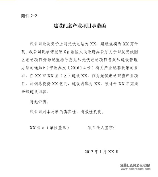 (一)对于配套产业项目已建成或开工的企业,须提供配套产业进展证明,提供虚假证明的,作废其竞价资格;对于配套产业项目未开工建设的企业,须出具建设配套产业项目的承诺函。对于未按承诺建设配套产业项目的,将纳入企业失信名单,并与可再生附加补贴资金申报以及光伏发电利用小时数等挂钩。详见附件2。