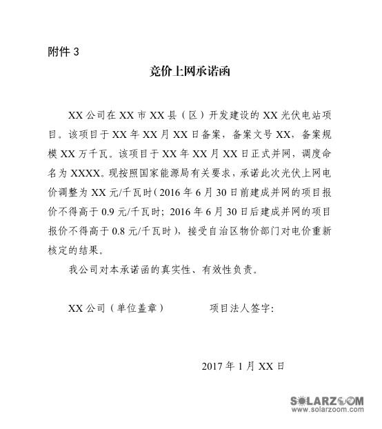 3、上网电价承诺函