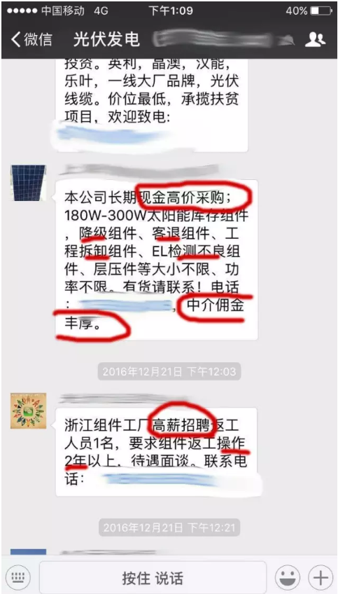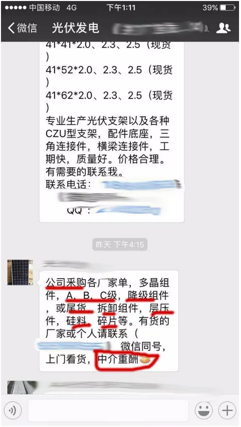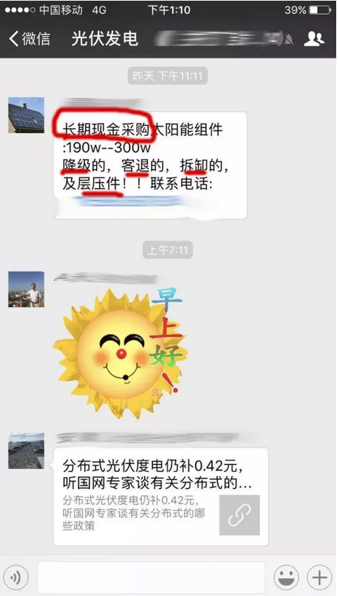 伏妹可不是编瞎话耸人听闻,看看这些截图,天天光伏群里都有人发布出售和收购次品的信息。