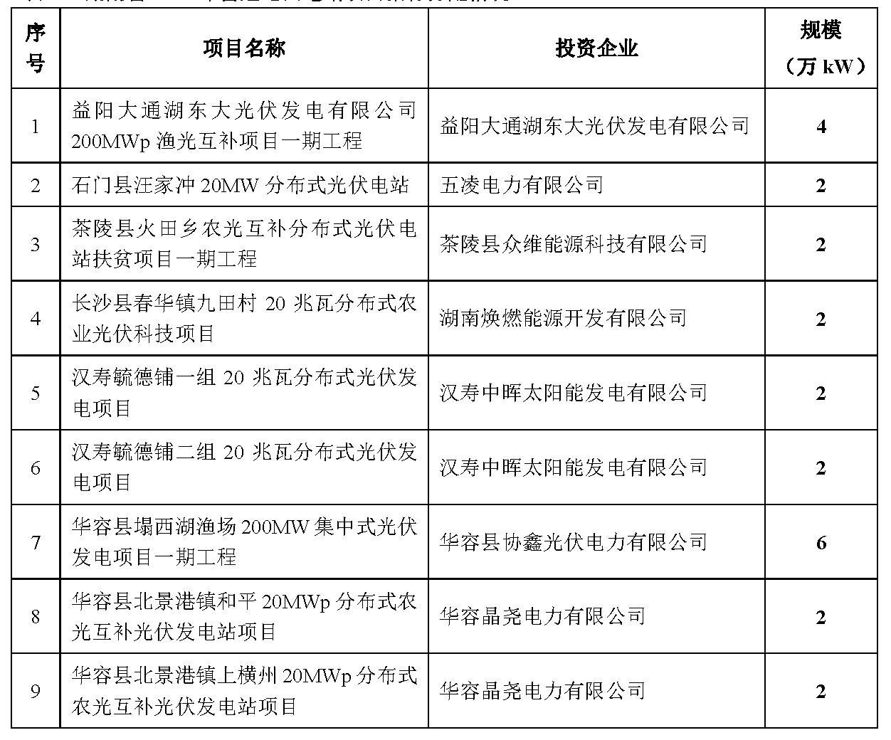3)近日,随着国家能源局要求增补指标,湖南拟增补95.957万kW的普通地面光伏电站指标,如表2。