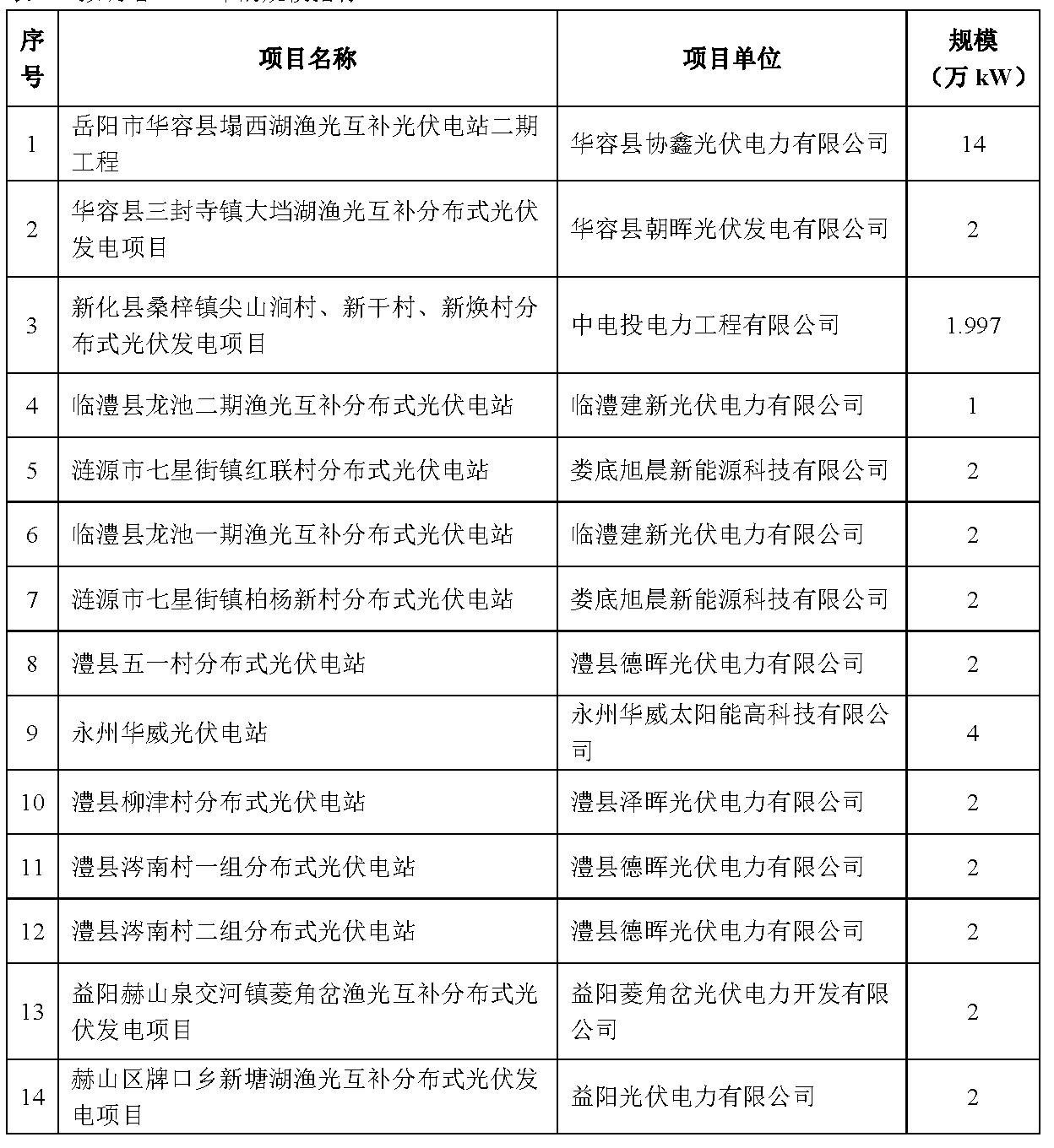 5)岳阳华容县万庾镇虾扒湖渔光互补光伏发电项目(装机2万千瓦)。