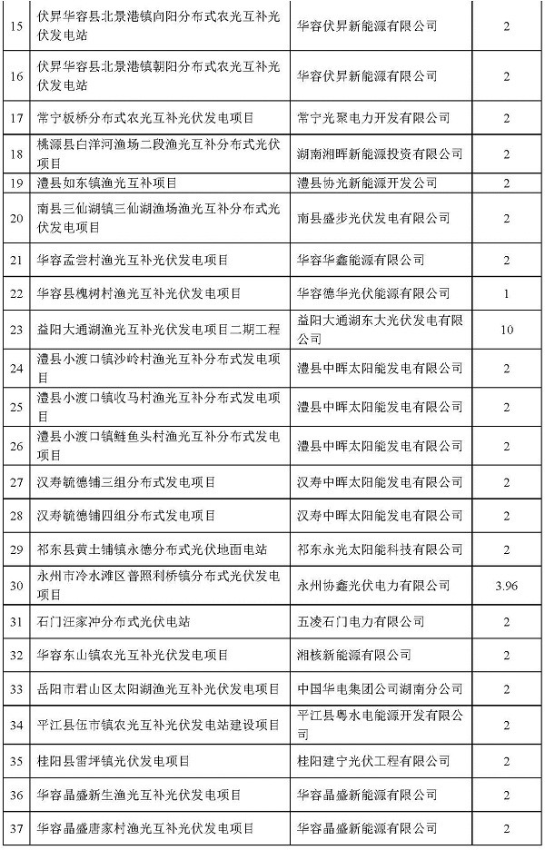 2016年调增指标,湖南拟调增37个项目,总规模为95.957万kW.
